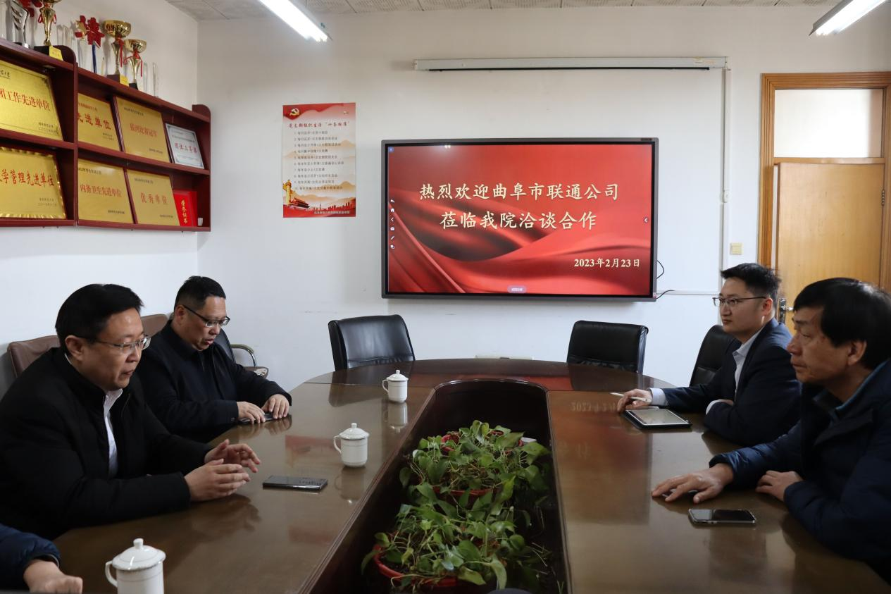 的学科专业、教学科研、师资队伍、科技创新、服务地方等办学情况,希望与曲阜市联通公司建立创新交流合作模式、深化交流合作内容,做到从“你中有我、我中有你”的初建阶段发展到“你就是我、我就是你”的较高境界,加速推动产学研相结合,切实提升校地合作水平。