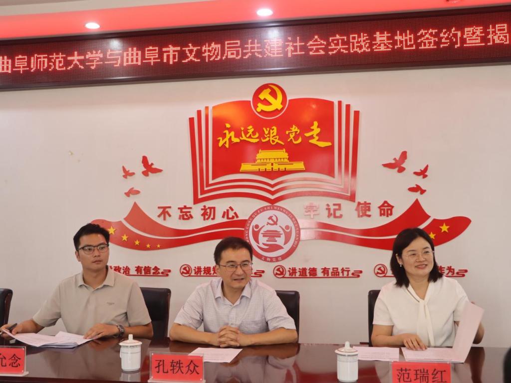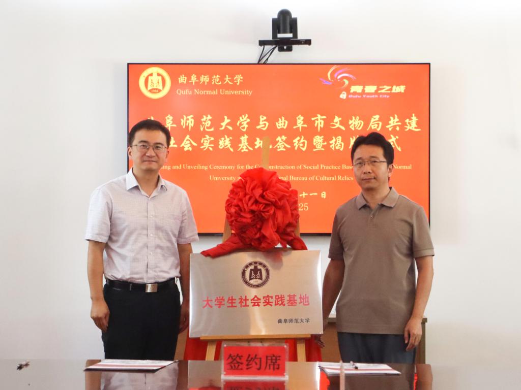党委副书记范瑞红、共青团曲阜市委书记王宇分别致辞。他们表示,实践基地的建立为青年学子搭建起一个理论与实践深度融合的平台,助力青年学子充分发挥专业优势,以“技术实践+文化浸润”的创新模式深入研习中华优秀传统文化,筑牢文化自信,培育社会担当,进而推动中华优秀传统文化在新时代背景下实现创造性转化与创新性发展。曲阜师范大学团委书记孔轶众、市文物局相关同志共同签署了《曲阜师范大学与曲阜市文物局大学生社会实践基地建设协议书》并为曲阜师范大学大学生社会实践基地揭牌。随后,与会人员紧紧围绕“深化校地协同、赋能文化传承与青年成长” 这一主题展开深入研讨。
