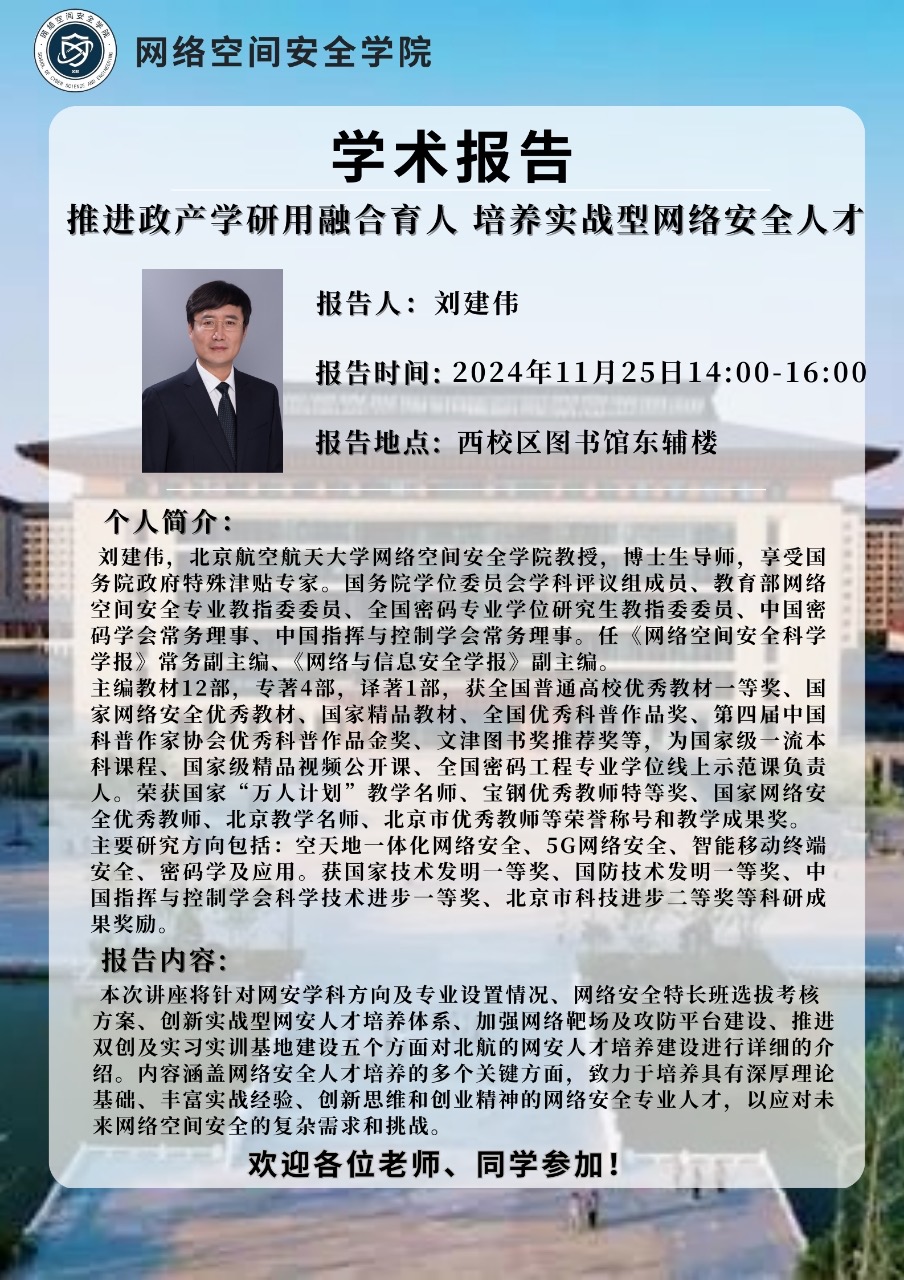 学术讲座:推进政产学研用融合育人 培养实战型网络安全人才