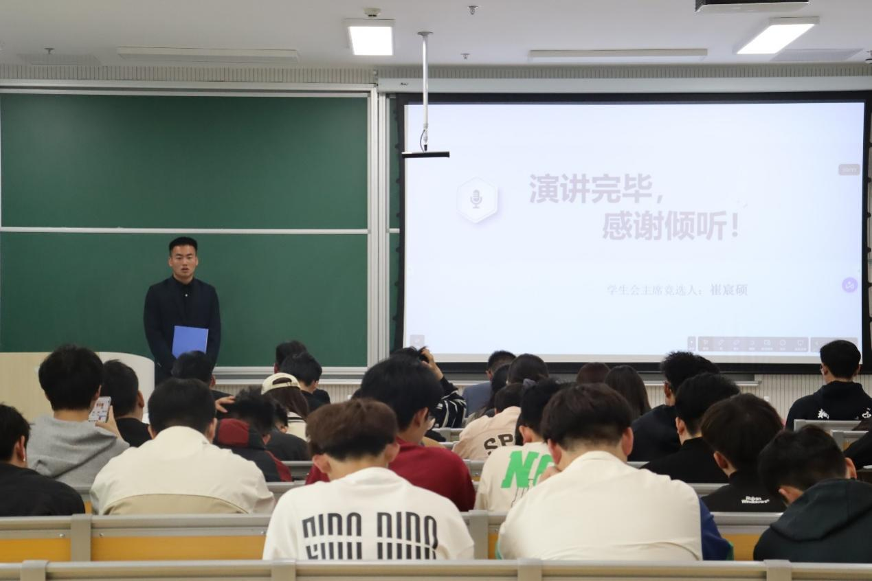相关规章制度进行,采取个人演讲和答辩相结合的模式,结合平时考核与无记名投票相结合的方式,公平、公正、公开地对新一届主席团成员进行选举。在正式竞选环节中,每位竞选者在规定时间进行演讲,陈述了对竞选职位的认识和自身优势,并条理清晰地回答了评委老师与主席团的提问,从实际工作出发对学生会的发展抒发自己的见解,为乐球直播