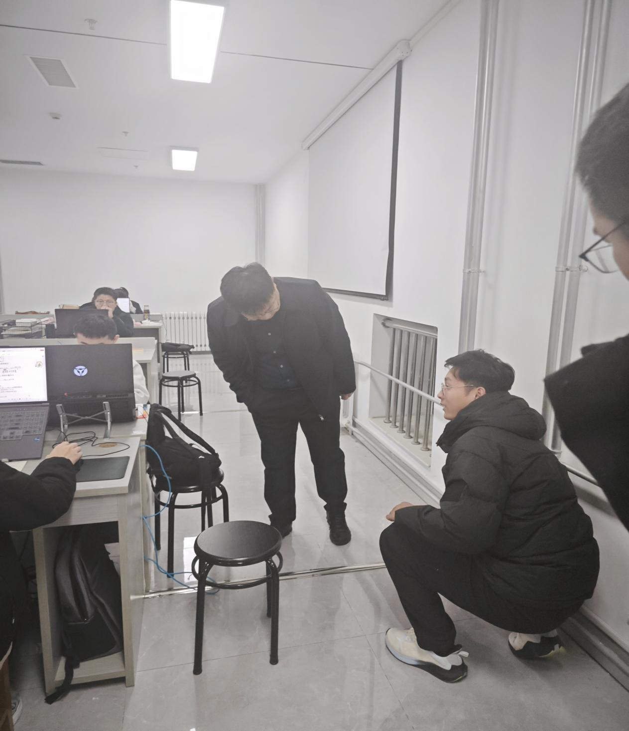 在检查过程中,针对自习室线路、学生电脑电线、插座、照明设备及学生自带充电设备等方面做了详细核查,对发现的问题详细记录并立即整改。同时提醒学生养成随手关闭设备电源的良好习惯,以避免电器长期通电带来的安全隐患。在学生工位卫生检查中,督促学生保持工位整洁,建议定期清理桌面物品,避免堆放杂物影响消防安全和个人健康。针对个别学生工位存在的杂乱情况,辅导员现场给予了整改指导。
