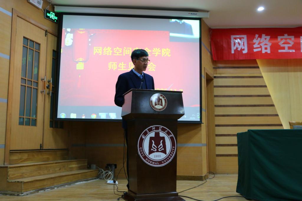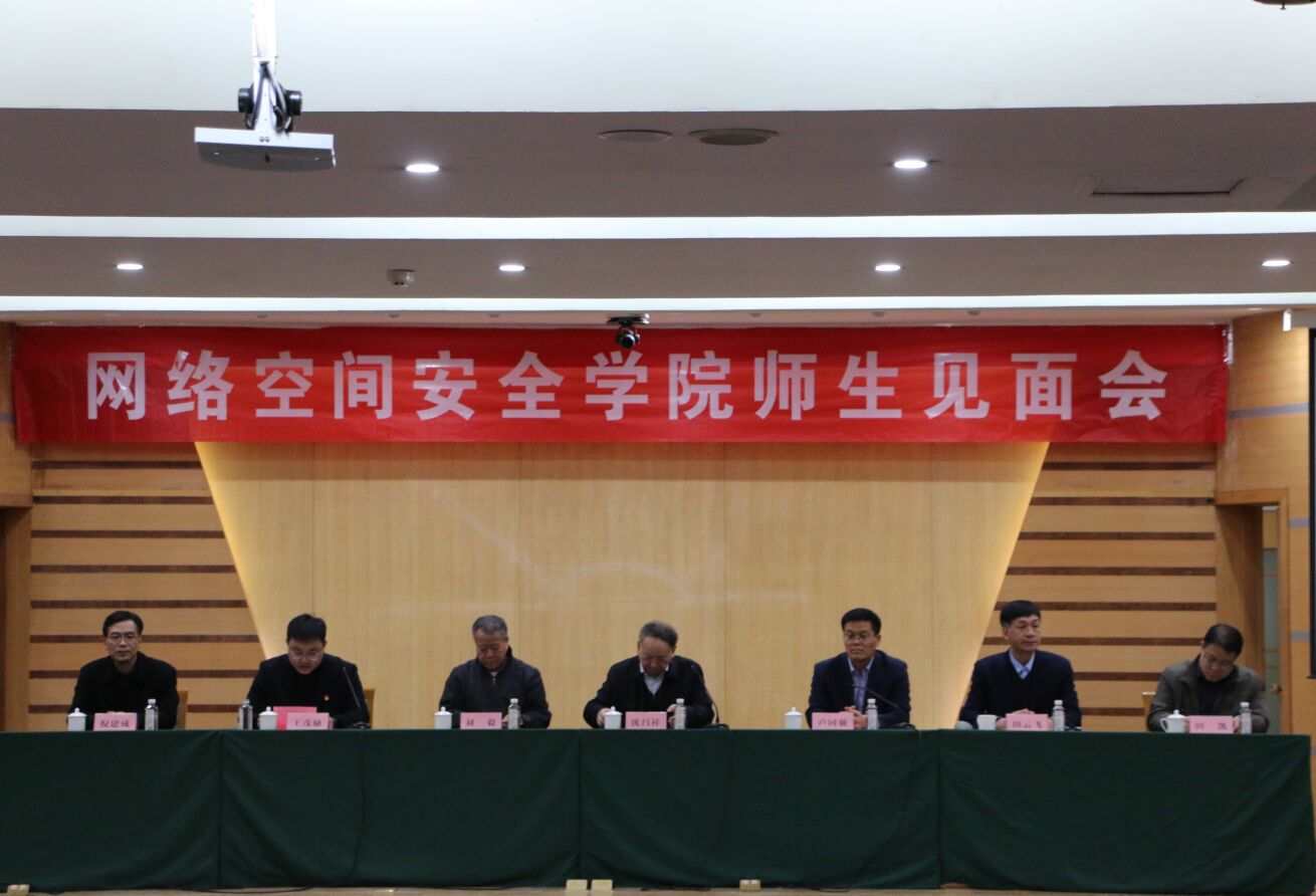 师生见面会暨沈昌祥院士报告会于孔子会堂举行。教育部高等学校网络安全专业教学指导委员会名誉主任、曲阜师范大学特聘教授、博士生导师沈昌祥院士,教育部高等学校网络空间安全专业教学指导委员会副秘书长刘毅博士,曲阜师范大学副校长卢国强,乐球直播官网