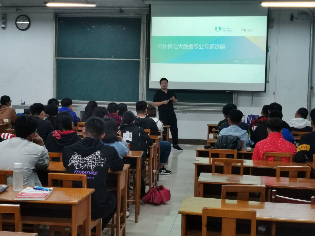 2018级物联网工程班、2018级智能数据班和2019级智能数据班举办了三场前沿知识讲座。三场讲座分别由英谷教育公司的王万琦、贲志强主讲。
