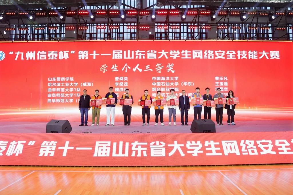 讯10月27日,“九州信泰杯”第十一届山东省大学生网络安全技能大赛决赛暨颁奖仪式在曲阜师范大学隆重举行,来自全省多所高校的精英队伍和网络安全技术爱好者齐聚一堂,共同上演了一场精彩纷呈的网络安全竞技盛宴。省委网信办副主任赵树岭,中国信息安全测评中心副主任张涛,省通管局党组成员、一级巡视员沈泳涛,省教育厅二级巡视员李文生,省委保密办二级巡视员王鑫,曲阜师范大学党委常委、副校长陈刚及省直相关单位领导出席活动。