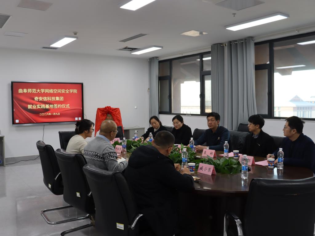 与奇安信科技集团就业实践基地与教学实习基地签约暨揭牌仪式于格物楼A504会议室顺利举办。奇安信科技集团袁彬、胥云兴、乐球直播官网