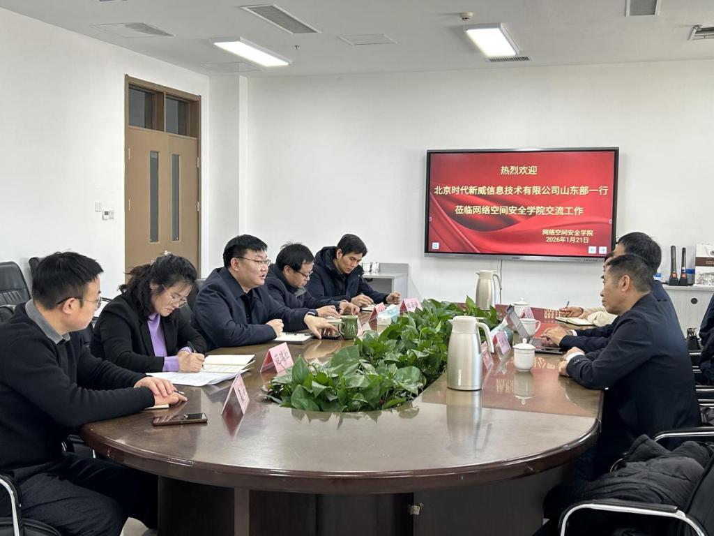 乐球直播官网 院讯(通讯员:赵兴卯为落实教育部“访企拓岗促就业”专项行动,深化产教融合,2026年1月21日,北京时代新威信息技术有限公司山东部领导一行莅临乐球直播官网 交流座谈。乐球直播 院长王茂励、党委副书记范瑞红及相关教师系主任参会,双方围绕人才培养、技术合作、就业赋能等核心议题深入探讨。