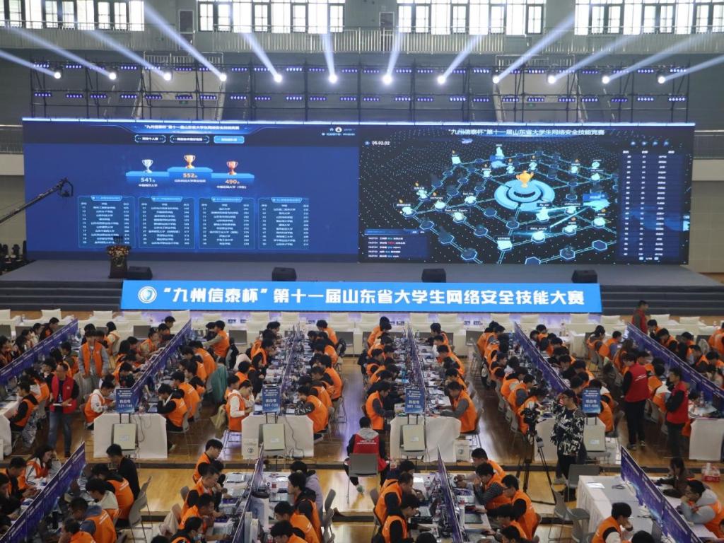 讯10月27日,“九州信泰杯”第十一届山东省大学生网络安全技能大赛决赛暨颁奖仪式在曲阜师范大学隆重举行,来自全省多所高校的精英队伍和网络安全技术爱好者齐聚一堂,共同上演了一场精彩纷呈的网络安全竞技盛宴。省委网信办副主任赵树岭,中国信息安全测评中心副主任张涛,省通管局党组成员、一级巡视员沈泳涛,省教育厅二级巡视员李文生,省委保密办二级巡视员王鑫,曲阜师范大学党委常委、副校长陈刚及省直相关单位领导出席活动。
